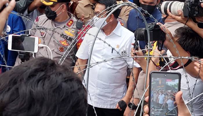 Di tengah-tengah jalannya demo BEM se-Indonesia, Kepala Staf Kepresidenan (KSP) RI, Moeldoko merespon dengan menemui para pengunjuk rasa tersebut. Foto: Ist