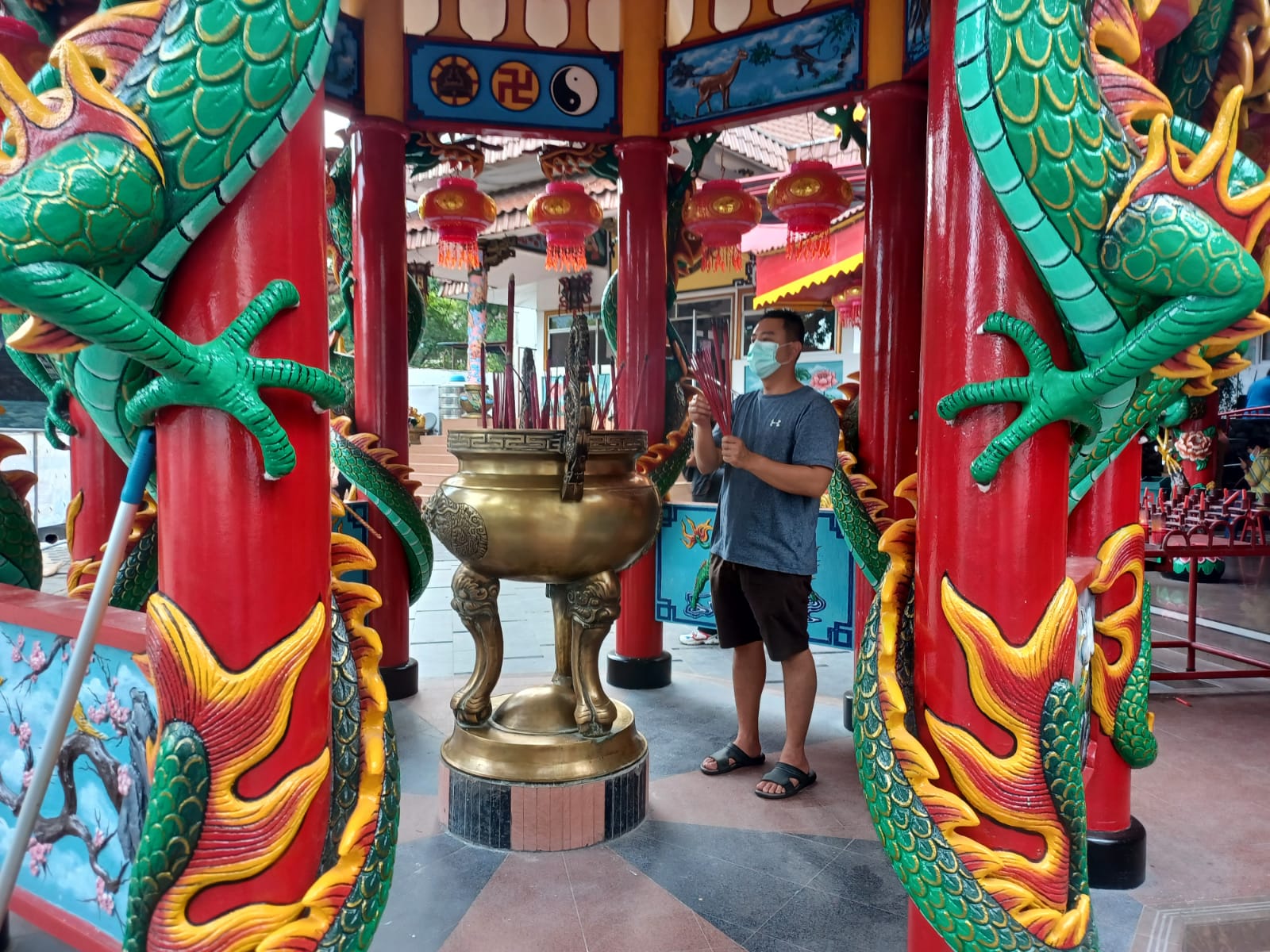 IPOL.ID – Tahun baru Imlek di 2022 kembali dirayakan bersamaan dengan pandemi COVID-19. Seperti halnya di Wihara Amurva Bhumi Hok Tek Tjeng Sin Jakarta, yang merayakan Tahun Baru Imlek secara sederhana dan menaati protokol kesehatan (prokes) ketat.