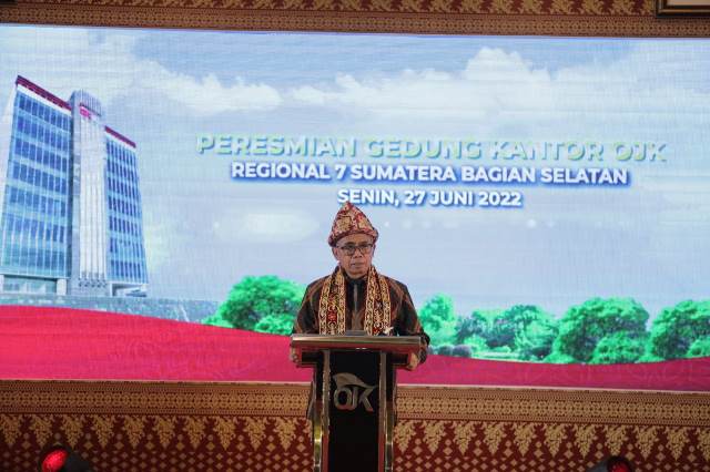 Demikian disampaikan Ketua Dewan Komisioner OJK Wimboh Santoso dalam Peresmian Gedung OJK Kantor Regional 7 Sumatera Bagian Selatan (KR 7 Sumbagsel) yang terletak di Jl. Jenderal Sudirman No. 1025, Palembang, Senin (27/6/2022).