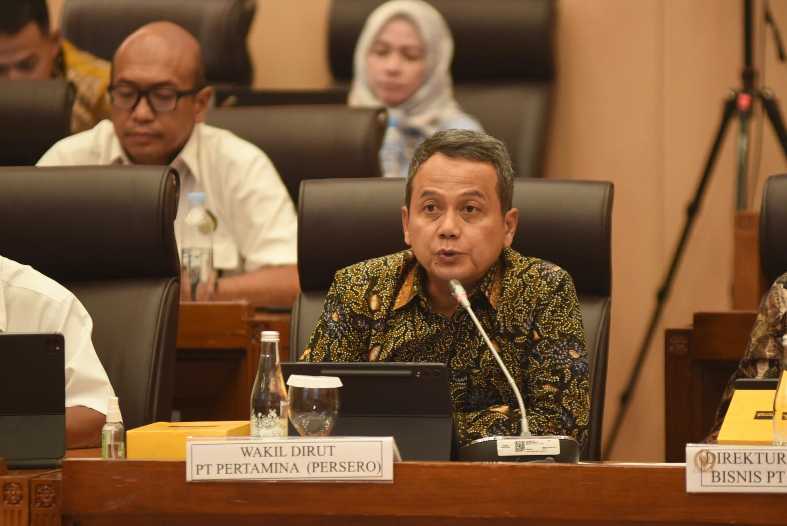 Wakil Direktur Utama Pertamina Wiko Migantoro menyampaikan penjelasan pada saat mengikuti Rapat Dengar Pendapat (RDP) Komisi VII DPR, Jakarta, (6/6/2024). Foto: Dok Pertamina
